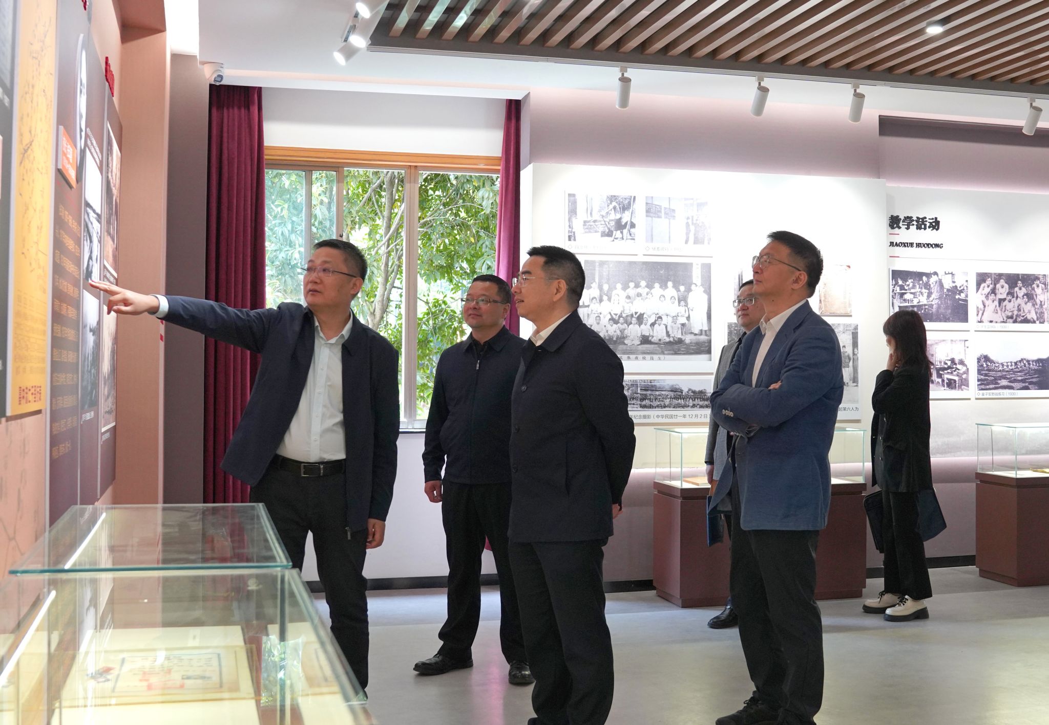 座谈会前,倪沪平一行参观嘉兴一中校史馆,沿着校史馆内陈列的珍贵图片和史料,了解嘉兴一中的历史沿革、办学理念、办学特色、杰出校友以及办学成就等基本情况。