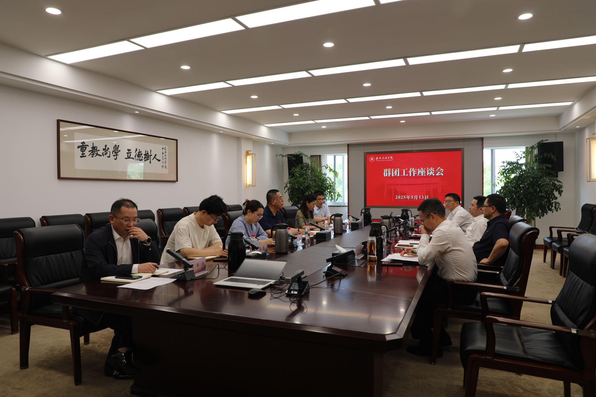 5月13日下午,学校召开群团工作座谈会。校党委书记倪沪平出席会议并讲话,校领导胡文蔚、沈岱峰、庄应强参加会议。
