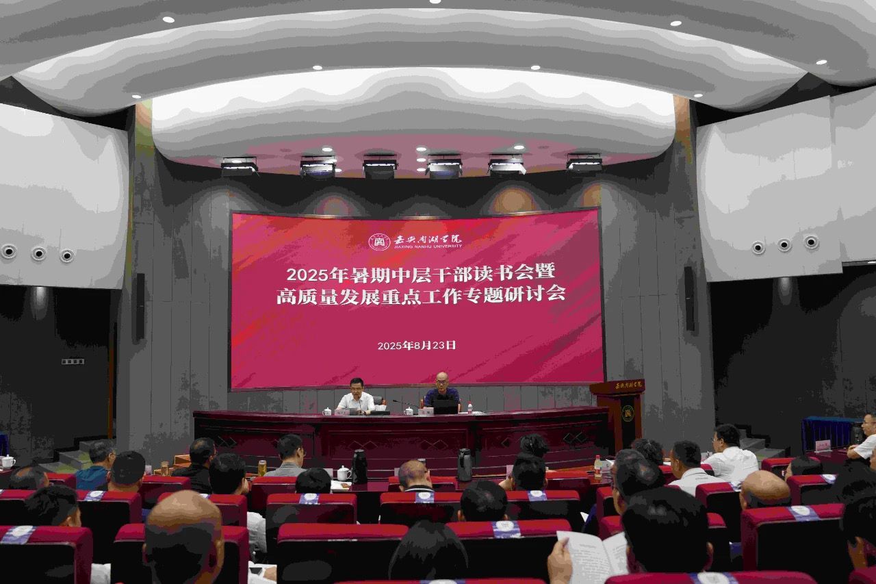 8月23日-24日,学校召开2025年暑期中层干部读书会暨高质量发展重点工作专题研讨会。全体校领导、中层干部、二级学院学术副院长参会。
