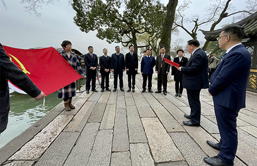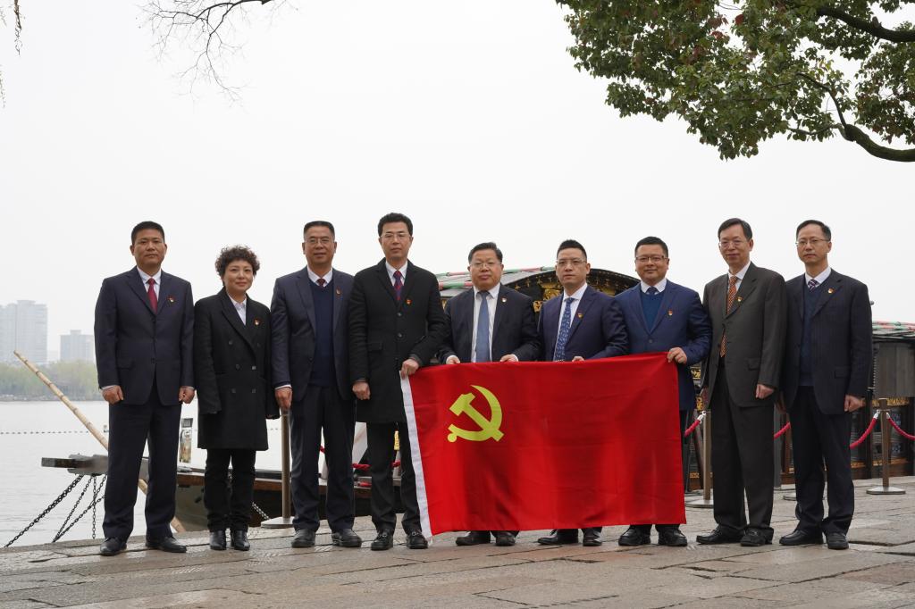 在全党掀起党史学习教育热潮之际,2021年3月9日,学校首任班子成员在党委书记盛付祥带领下来到南湖红船旁,共同瞻仰南湖红船、重温入党誓词、感悟初心使命。