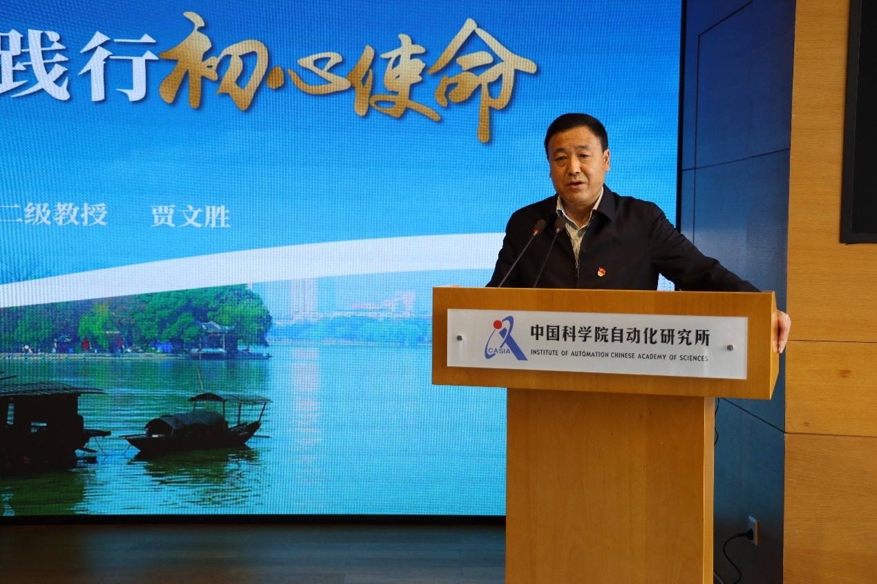 5月11日上午,校长贾文胜受邀为中国科学院自动化研究所党委作题为“弘扬红船精神,践行初心使命”专题辅导报告,报告会由自动化研究所党委书记牟克雄主持。