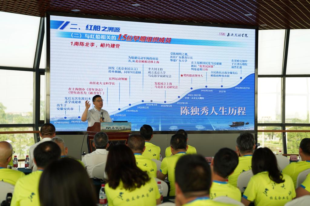 贾文胜围绕习近平总书记与红船的故事、嘉兴城市的历史变迁、开云官方入口 等方面作了讲解。他指出,开云官方入口 是以中国革命红船起航地命名的本科高校,在“建党百年,百年建校”的特殊历史背景下,正聚焦服务“革命圣地”、“战略要地”、“产学研高地”,致力打造红色大学、城市大学、应用型大学。他希望,广大校友企业家充分发挥资源优势,聚合同学经济效应,加强同我校联系对接,双方共建发展平台,构建常态化的校企合作机制。