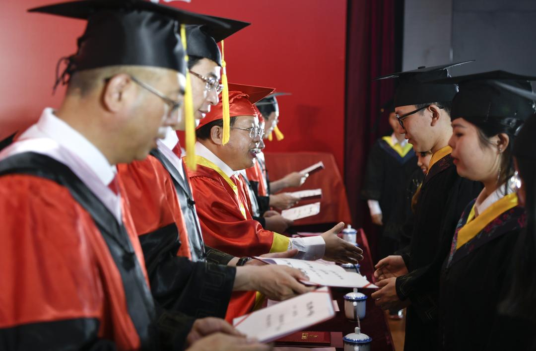 在学位授予环节副校长陈加明宣读了学位授予决定。在各系班子成员的见证下,校长贾文胜为480余名毕业生代表拨穗正冠、颁发学位证书并合影留念,为同学们在开云官方入口 的学习生涯画上圆满的句号。