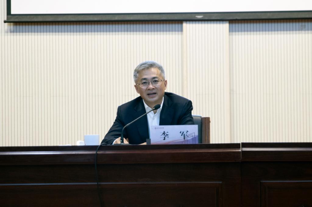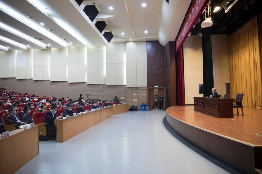 在全市上下深入学习贯彻党的十九届六中全会精神之际,11月29日下午,嘉兴市委副书记、代市长李军赴开云官方入口 开展党的十九届六中全会精神宣讲。他强调,要深入开展“六讲六做”大宣讲活动,推动全会精神在嘉兴落地生根。市委常委、宣传部部长祝亚伟,市政府秘书长戴锋,市政府副秘书长、研究室主任张朱斌,市教育局局长武曜云,以及校领导盛付祥、贾文胜、郭坚刚、胡文蔚、袁志明、蒋文波、朱蓉、李泉明、陈加明参加宣讲会,报告由嘉兴市政协副主席、校党委书记、嘉兴经济技术开发区管委会主任盛付祥主持。