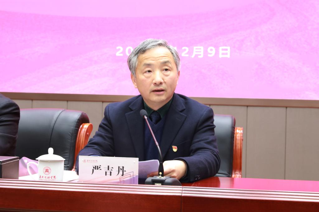 严吉丹在致辞中强调,当前,全市上下正掀起深入学习宣传贯彻党的十九届六中全会精神热潮,站在两个百年目标交汇的历史起点上,前景让人期盼,目标催人奋进。就如何做好新时代工会工作,他提出三点意见:一是把握正确方向,强化责任担当,不断增强工会工作的责任感使命感。二是围绕中心大局、坚持开拓创新,在助力高质量发展建设共同富裕示范区的典范城市中展现工会组织的新作为新形象。三是聚焦主责主业、维护职工权益,不断提升教职员工的幸福感获得感。他号召我校职工要以高度的政治责任感,良好的精神状态和扎实的工作作风,不断推进工会各项工作,在助力建设国内一流的应用型本科高校,助推嘉兴高质量发展建设共同富裕示范区的典范城市作出新的更大的贡献。