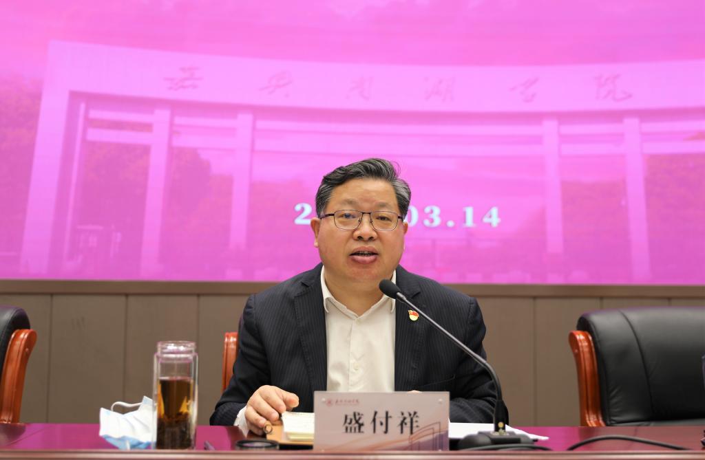 3月14日上午,学校召开全校疫情防控工作部署会,对学校疫情防控工作作出再部署、再强调、再动员。嘉兴市政协副主席、校党委书记盛付祥,校党委副书记胡文蔚,校纪委书记蒋文波,副校长朱蓉、李泉明、陈加明出席会议。学校疫情防控专班小组成员、全体中层干部参加会议,会议由胡文蔚主持。