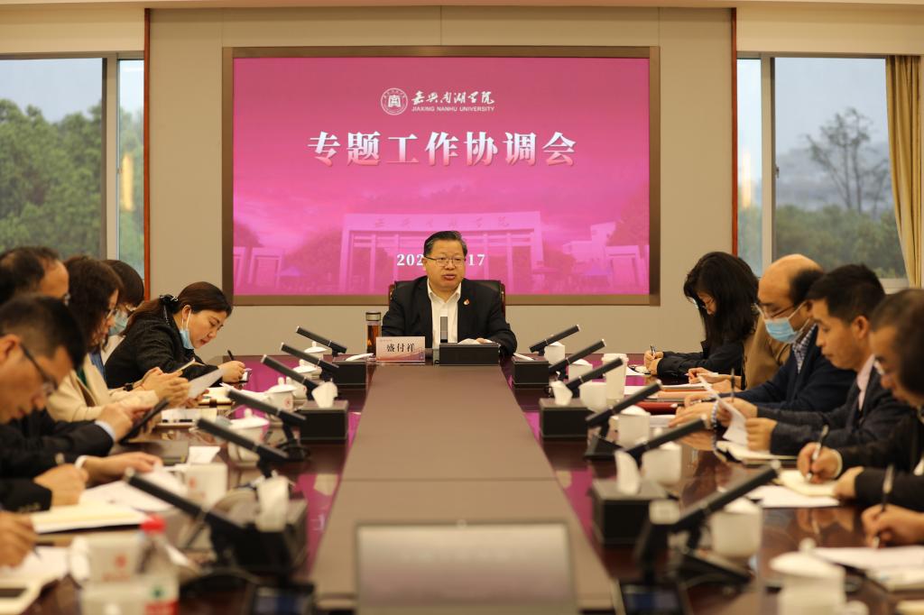 3月17日上午,嘉兴市政协副主席、校党委书记盛付祥主持召开专题工作协调会。现代金融学院及相关部门负责人参加会议。