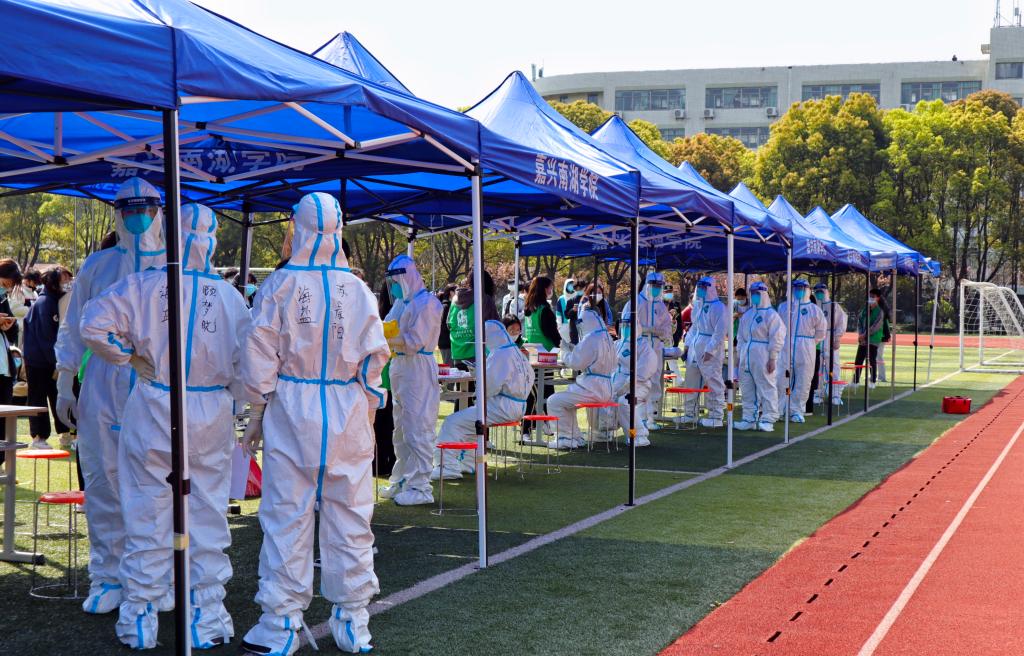 3月29日凌晨,接嘉兴市疫情防控指挥部通知,嘉兴市辖区启动疫情防控二级响应,学校被划入疫情防范区范围。为迅速切断传播链,根据市疫情防控领导小组办公室指令,学校疫情防控指挥部第一时间启动疫情防控响应机制,全面执行学校封闭管理,暂时停止线下教学,并在学校体育场设置临时核酸采样点,组织在校师生员工开展全员核酸检测。
