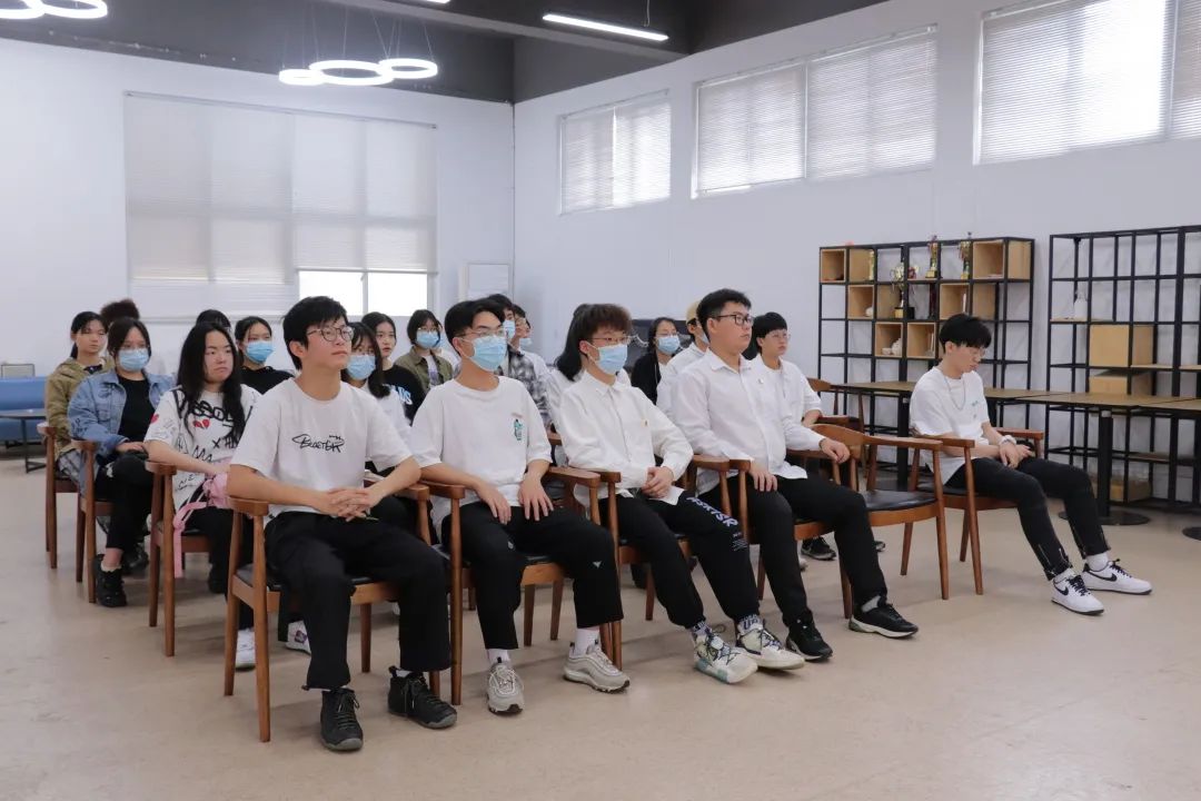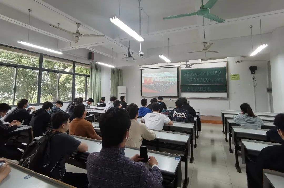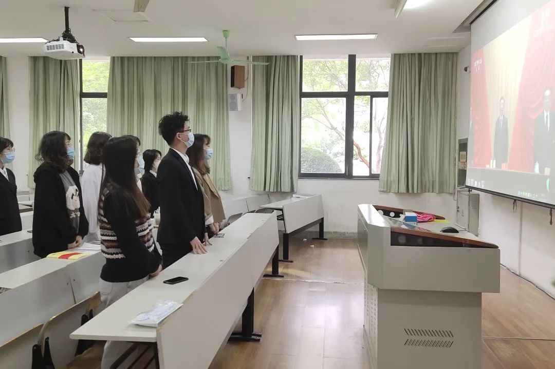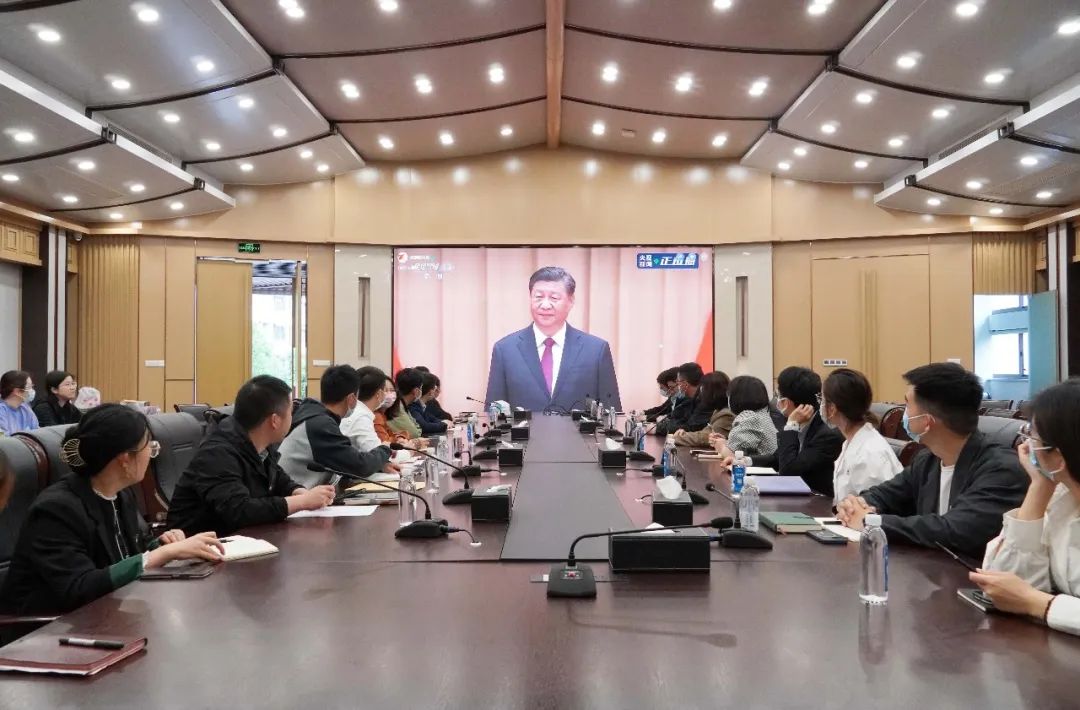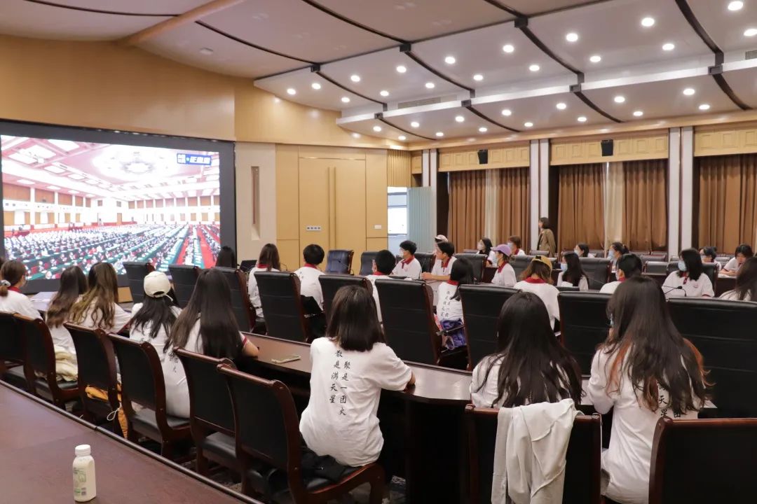 校级青马班全体成员在会议室观看大会直播