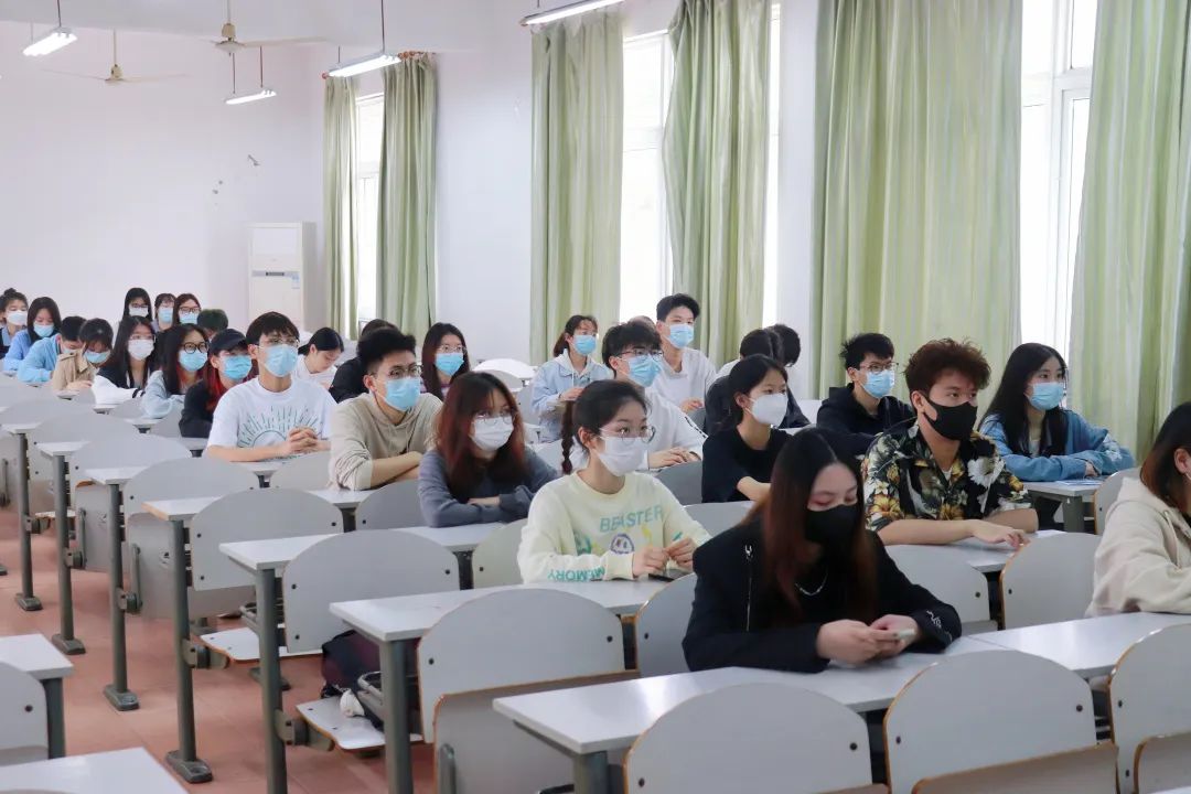 各二级学院学生代表在教室观看大会直播