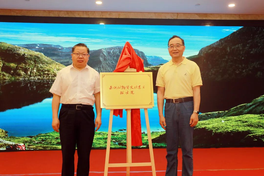 杨建新与盛付祥共同为嘉兴非物质文化遗产研究院揭牌。盛付祥代表学校接受杨建新赠书,并为研究院首批聘任专家颁发聘书。