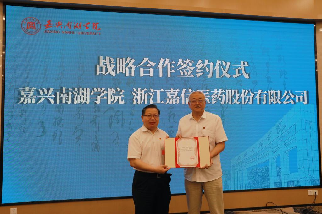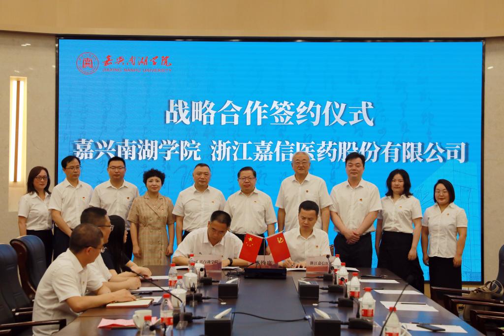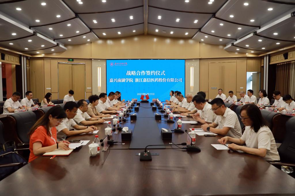 盛付祥介绍了学校的基本情况,他表示,学校与嘉信医药开展战略合作,是双方整合资源、共同发展、互利共赢的重要举措,对学校丰富“第二课堂”、培养高素质应用型人才、深化产教融合、加强产学研合作具有重要意义。也必将促进企业高质量发展水平和竞争力提升,推动地方非物质文化遗产的保护、研究、推广和合理开发,助力嘉兴医药健康事业发展。希望校企精诚合作,共谱发展新篇,充分利用各自资源优势,密切交流、深化合作,合力开创共赢发展新局面,为嘉兴奋进“两个率先”作出新的更大贡献。