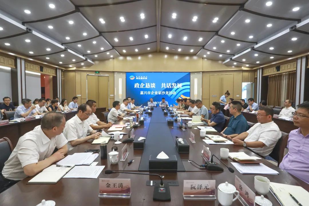 7月14日下午,由市工商联、开云官方入口 共同承办的嘉兴市“政企恳谈 共话发展”企业家沙龙活动在我校举行。市委常委、统战部部长李小平,市政协副主席、校党委书记盛付祥出席,活动由市政府副秘书长王荣主持,市发改委、经信局、科技局、财政局、人社局、税务局、金融办、工商联有关负责人和浙江凯鸿物流、恒丰工具、振石控股集团、桐昆集团、新凤鸣集团等27家龙头企业负责人参加活动。