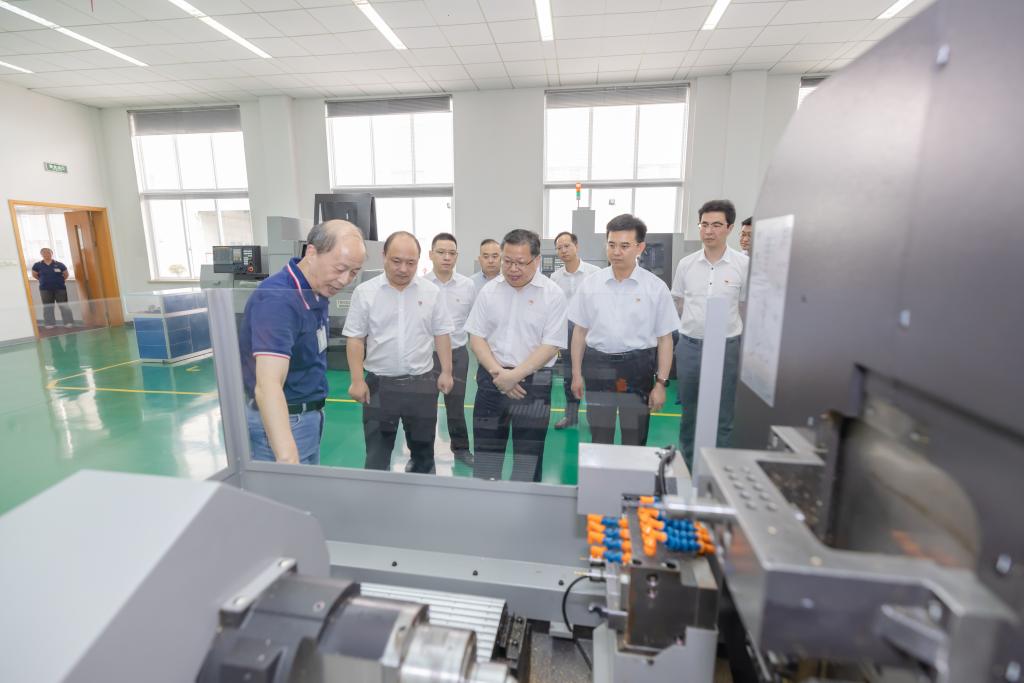在津上精密机床(浙江)有限公司,相关负责人就公司的发展概况、生产体系、相关产品等进行了介绍,并带领盛付祥一行实地调研了生产车间,对企业的生产线工艺流程作了进一步的了解。
