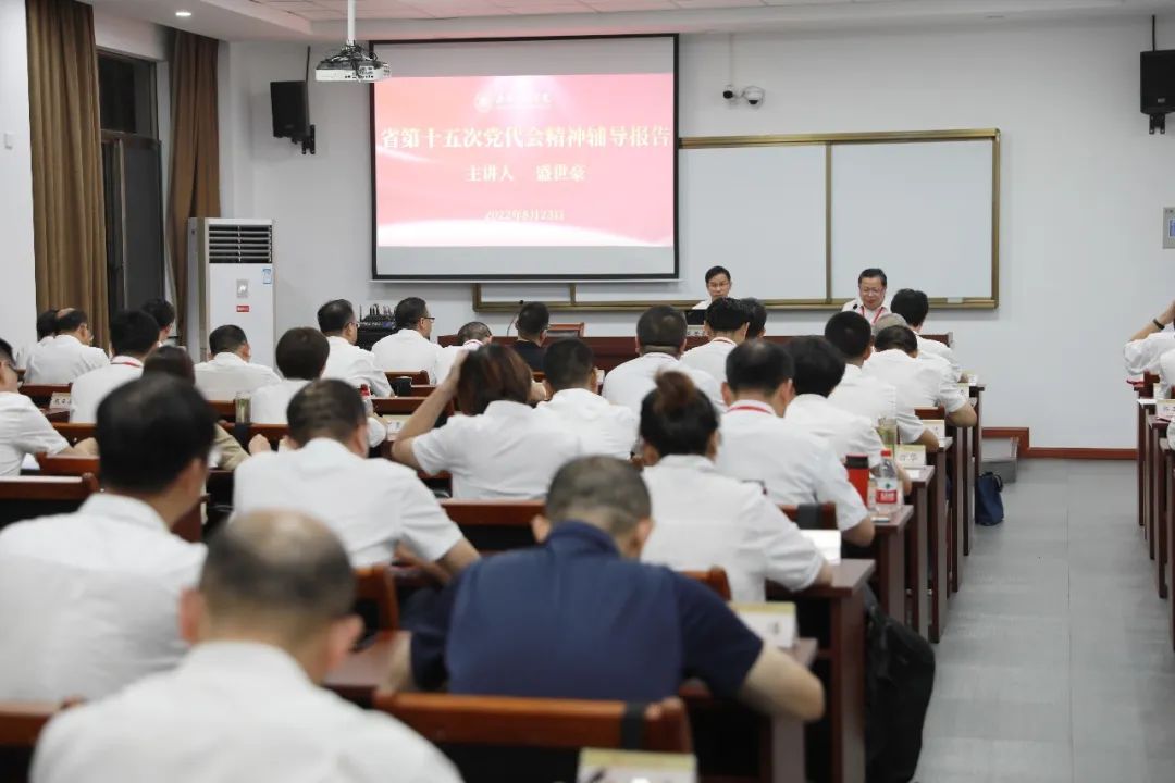 浙江省委宣传部副部长,省社会科学界联合会主席、教授盛世豪从深刻理解把握党代会主题的丰富内涵、过去五年的历史性成就、八个方面规律性认识、致胜未来的科学指引、先行探路的奋斗目标、引领发展的工作导向、具体工作任务、党的建设的根本保障八个方面为全体学员作了省第十五次党代会精神的专题辅导报告。