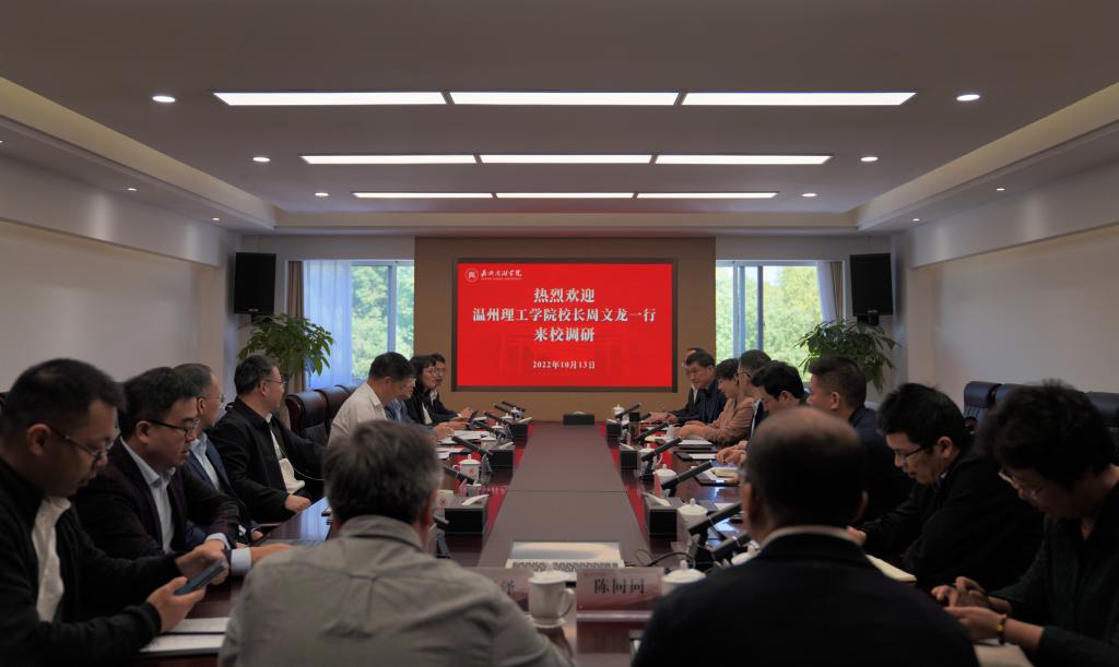 10月13日上午,温州理工学院校长周文龙、校党委副书记吕朝晖,副校长吴向鹏、孙芙蓉一行来校考察交流,就转设后学校发展若干问题做交流。校长贾文胜,校党委副书记郭坚刚,副校长朱蓉、陈加明出席座谈会。