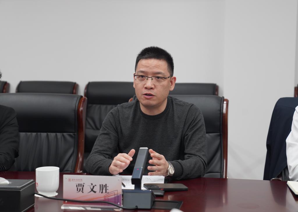 贾文胜代表学校对林伟连一行的到来表示热烈欢迎,并从应用型大学建设、职称制度改革、社会合作等方面介绍了学校的基本情况。他表示,浙江大学长三角智慧绿洲创新中心聚焦构建科技研发、产业转化、人才培养、决策咨询四大平台,对学校各项工作提供了许多指导和支持,希望双方未来可以在教育服务平台共建、智能制造、数字影像呈现等方面进一步拓宽合作的广度与深度。他要求,相关部门和学院要以此次交流为契机,全力以赴解决好就近问题,真正做到主动对接,在充分考虑服务产业和地方经济社会发展的前提下,与浙江大学长三角智慧绿洲创新中心共同设计项目,撬动第三方支持,实现共赢发展,创新发展。