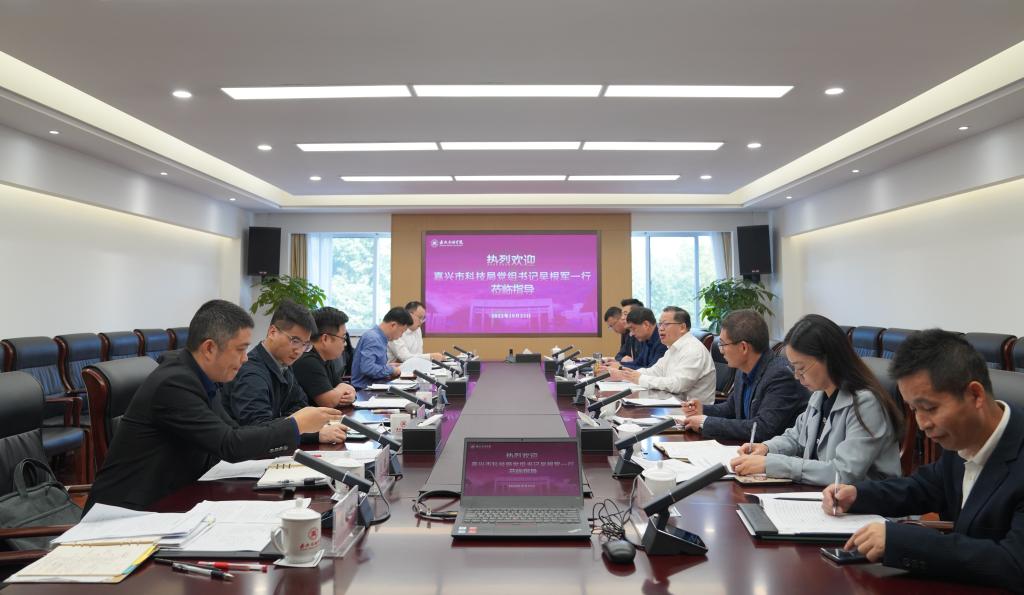 10月25日上午,嘉兴市科技局党组书记吴根军一行来校交流。嘉兴市政协副主席、校党委书记盛付祥、副校长朱蓉出席交流座谈会。
