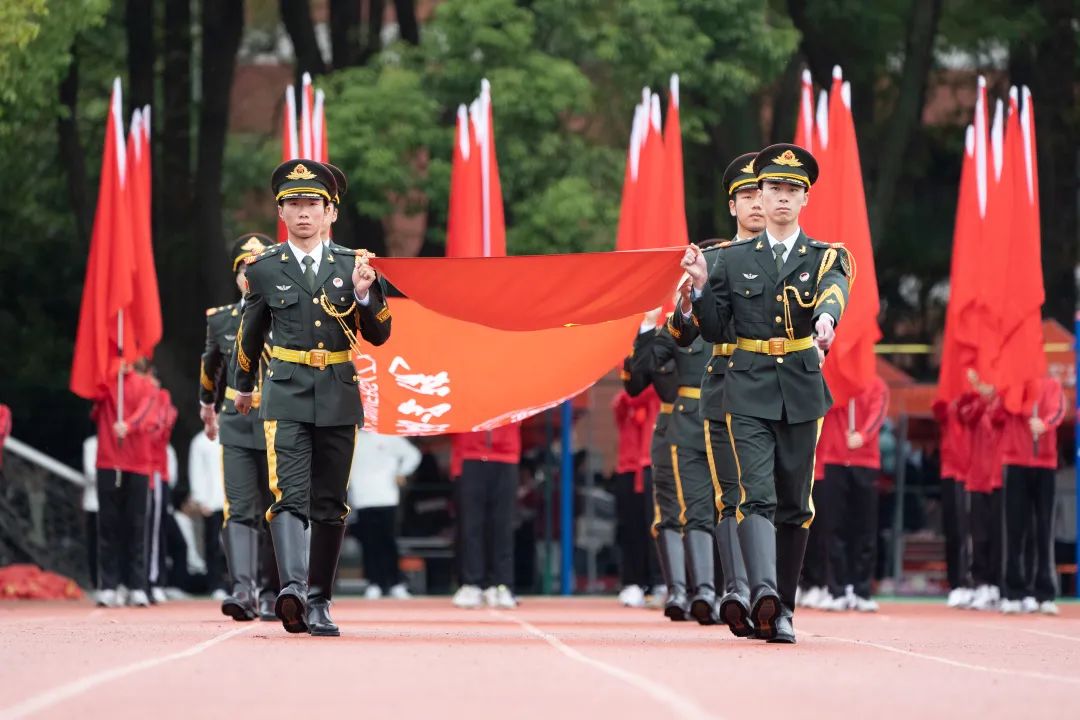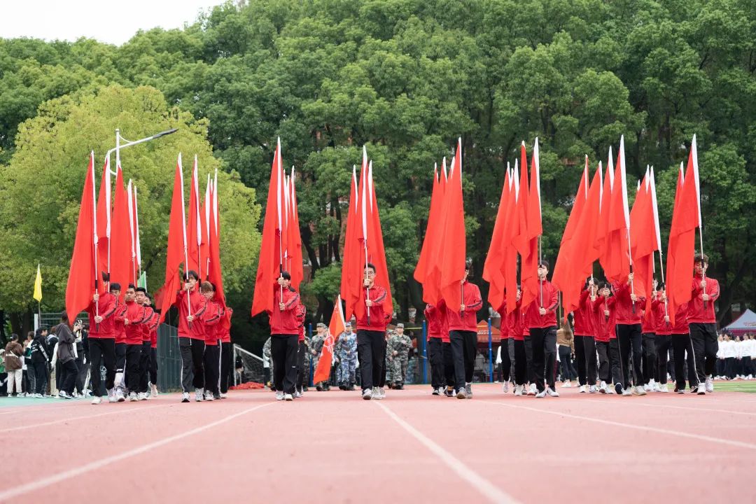 开幕式上,各学院运动员、退役军人、教职工和裁判员代表方阵迈着整齐昂扬的步伐逐一入场。在激昂的国歌声中,国旗缓缓升起,随风飘扬。浙江省第七届大学生田径锦标赛女子甲组100米栏铜牌获得者俞思妤、体军部教师张祖源分别作为运动员代表和裁判员代表宣誓,承诺一定顽强拼搏、公平竞争、遵守规则、严格履职。由大学生艺术团与海华武术馆表演的节目将开幕式推向高潮。