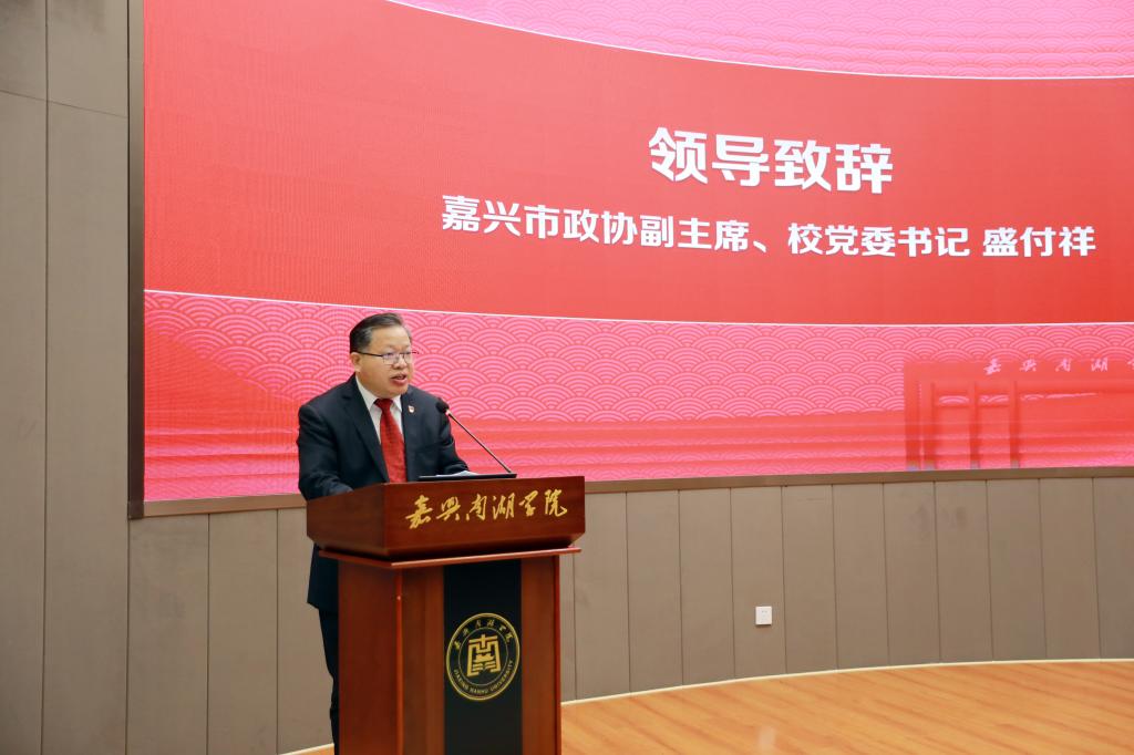 盛付祥在致辞中代表学校党委对到场的领导和嘉宾表示热烈欢迎,对学校与嘉兴市文明办共建乡贤与家风研究院表示热烈祝贺,对一直以来关心支持学校发展的各级领导和社会各界表示衷心感谢。他指出,校党委高度重视乡贤与家风研究院建设,召开专题研究部署研究院的建设与发展,明确建设目标和要求。今年暑假,由我校大学生组成的红色“嘉”风探研队在指导老师带领下,走访了包括“红船卫士”王会悟孙女李典等在内的10个红色家庭,先行启动了乡贤与家风文化实践研究。