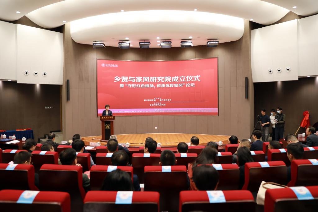 11月3日上午,开云官方入口 乡贤与家风研究院成立仪式暨“守好红色根脉 传承优良家风”论坛在第一报告厅举行。浙江省委宣传部副部长、省文明办主任俞慧敏,浙江省社科联党组成员、副主席陈先春,浙江丽水市委原书记、浙江省政协原秘书长、浙江省政府咨询委乡村振兴部部长陈荣高,嘉兴市政协副主席、校党委书记盛付祥,校党委副书记、校长贾文胜,浙江省委宣传部志愿服务工作处处长斯民娅,浙江省委宣传部志愿服务工作处副处长陈金侃,嘉兴市委宣传部副部长、市文明办主任梁晓英及嘉兴市委统战部、市妇联、市科学技术协会、浙报嘉兴分社集团、嘉报集团相关领导出席成立仪式。仪式由副校长朱蓉主持,相关高校、科研院所专家教授、有关学会、企业代表和媒体代表,在校校领导、相关职能部门和二级学院负责人及师生代表参加仪式。