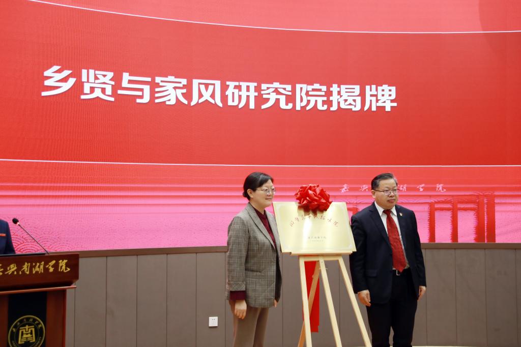 仪式上,俞慧敏、盛付祥共同为乡贤与家风研究院揭牌。