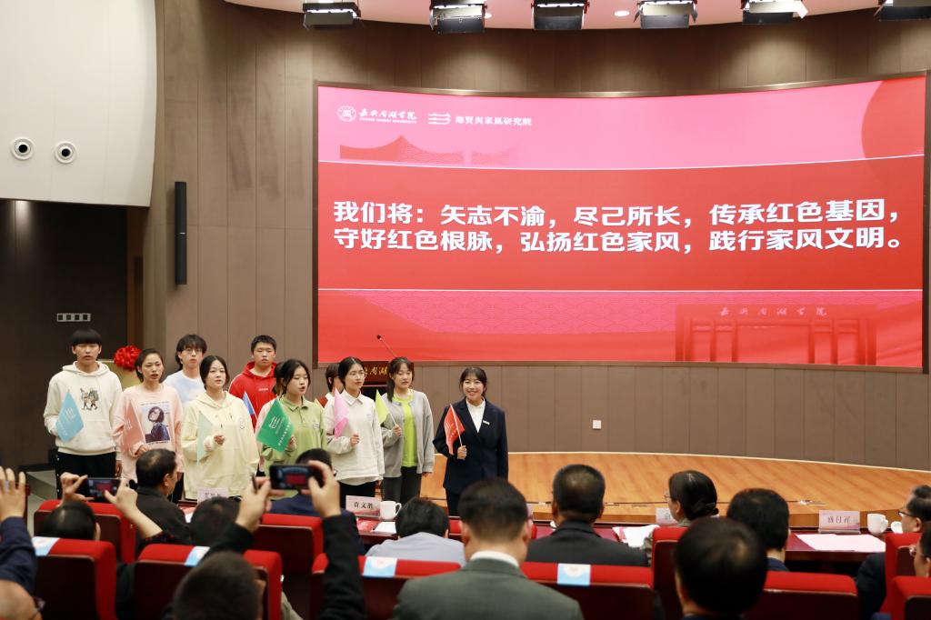 与会人员共同见证了寻访浙江红色家风小分队的出征仪式,并参观了校史广场、红船精神育人馆和乡贤与家风研究院。