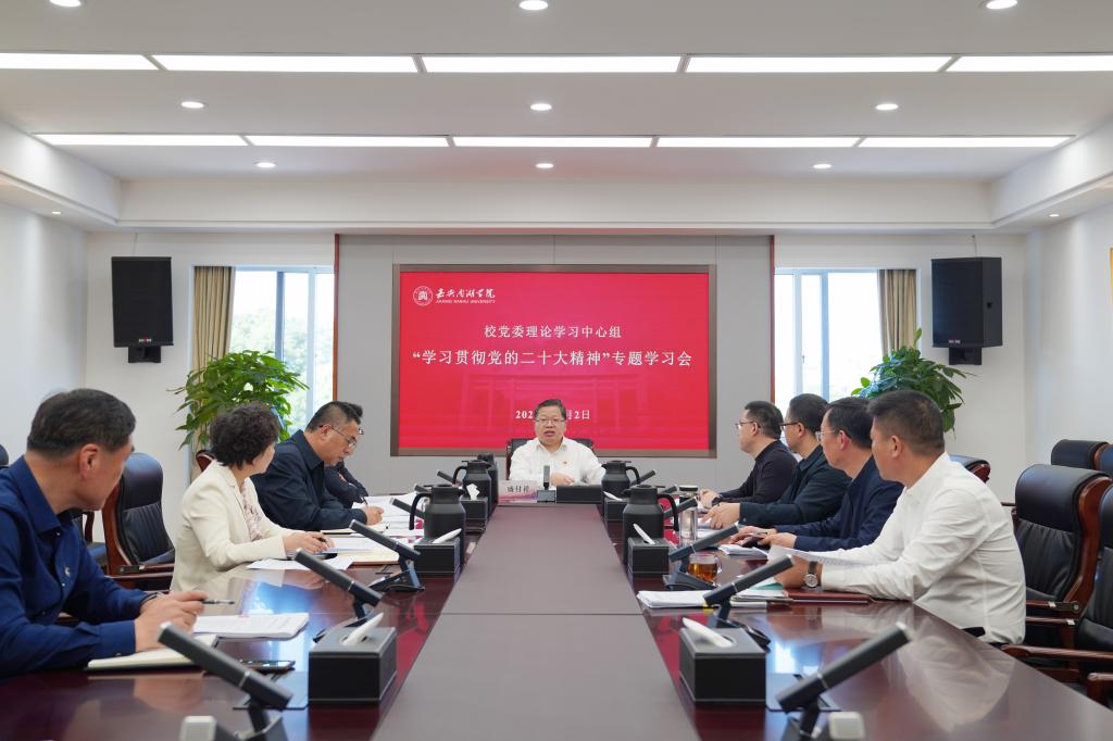 11月2日下午,开云官方入口 党委理论学习中心组举行“学习贯彻党的二十大精神”专题学习会。嘉兴市政协副主席、校党委书记盛付祥主持会议。