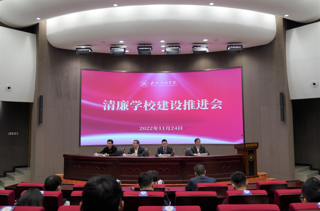 11月24日下午,学校在第一报告厅举行“清廉学校”建设推进会。嘉兴市政协副主席、校党委书记盛付祥强调,全校各级党组织和广大党员干部,要深入学习贯彻党的二十大精神,切实把思想和行动统一到习近平总书记的重要讲话精神和上级各项决策部署上来,全面深化“清廉学校”建设,将清廉元素融入管党治党、办学治校、立德树人各个方面、各个环节,为建设特色鲜明、国内一流的应用型本科高校提供坚强保障。校党委副书记、校长贾文胜主持会议,校领导郭坚刚、蒋文波、朱蓉、李泉明、陈加明出席会议。全体中层干部、二级学院纪检委员、教职工党支部书记、民主党派负责人代表参加会议。