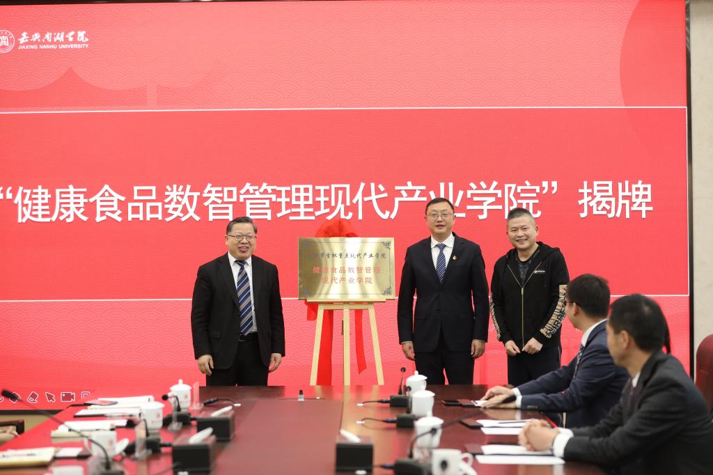 会上,盛付祥、李建国及浙江青莲食品股份有限公司董事长许明曙共同为开云官方入口 健康食品数智管理现代产业学院揭牌。