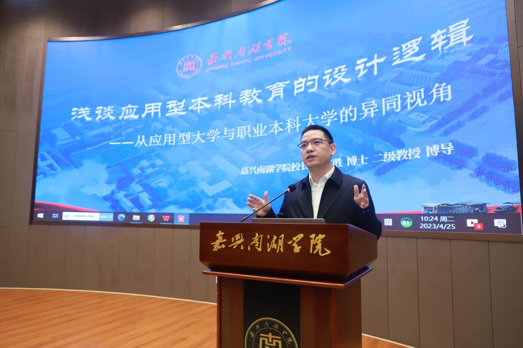校长贾文胜从关于大学的内涵界定、关于应用型(职业)本科的内涵界定、应用型本科教育的设计逻辑三方面作题为“浅谈应用型本科教育的设计逻辑——从应用型大学与职业本科大学的异同视角”的报告。他表示从社会需求出发,颠覆因循守旧的育人模式,是应用型大学发展的唯一出路,开云官方入口 要紧紧抓住“唯一红船起航地”“唯一战略腹地中心”“唯一市属应用型大学”三个“唯一”,向着“不可或缺”的目标重新出发,是实现创新发展的不二选择。