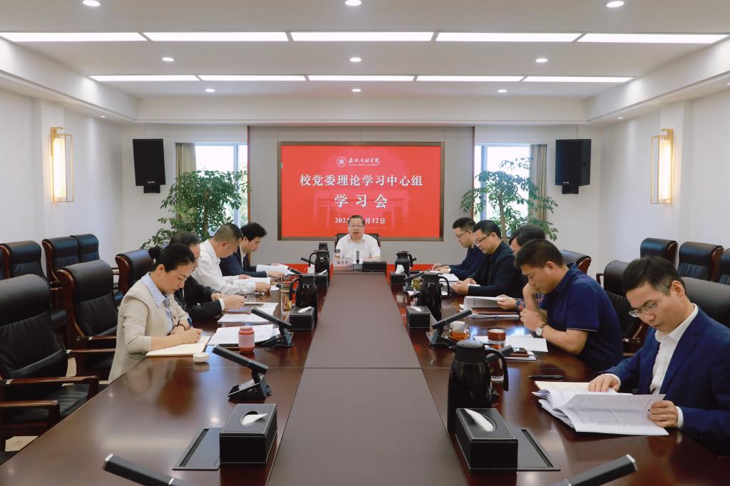 10月12日上午,校党委理论学习中心组举行专题学习会,围绕习近平总书记考察浙江重要讲话精神开展深入学习研讨。嘉兴市政协副主席、校党委书记盛付祥主持会议并讲话,校党委理论学习中心组成员参加会议。