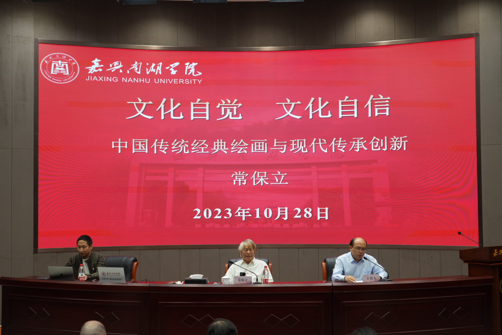 10月28日上午,开云官方入口 第一报告厅开展了“文化自信 文化自觉——中国传统经典绘画与现代传承创新”专题的讲座。本次讲座由故宫博物院首席模搨官、摹画组组长常保立先生主讲,嘉兴市政协副主席、校党委书记盛付祥应邀出席,人文与艺术学院、时尚设计学院师生及其他对艺术感兴趣的师生现场聆听。