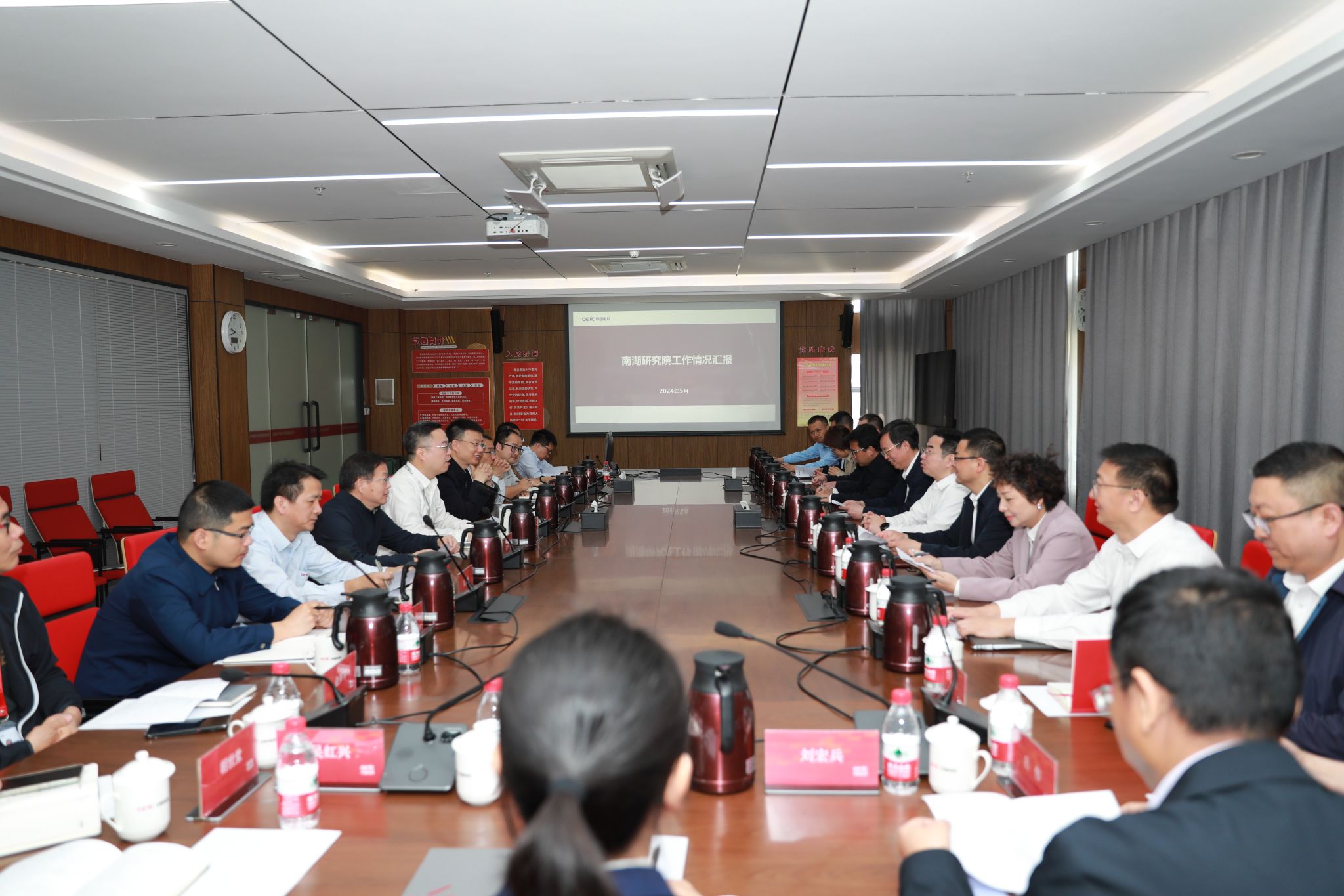 5月10日上午,校党委书记倪沪平带队,校党委副书记胡文蔚,副校长蒋文波、朱蓉、赵渊,校党委副书记沈岱峰一行赴中国电子科技南湖研究院考察学习。两个单位相关部门负责人参加座谈会。
