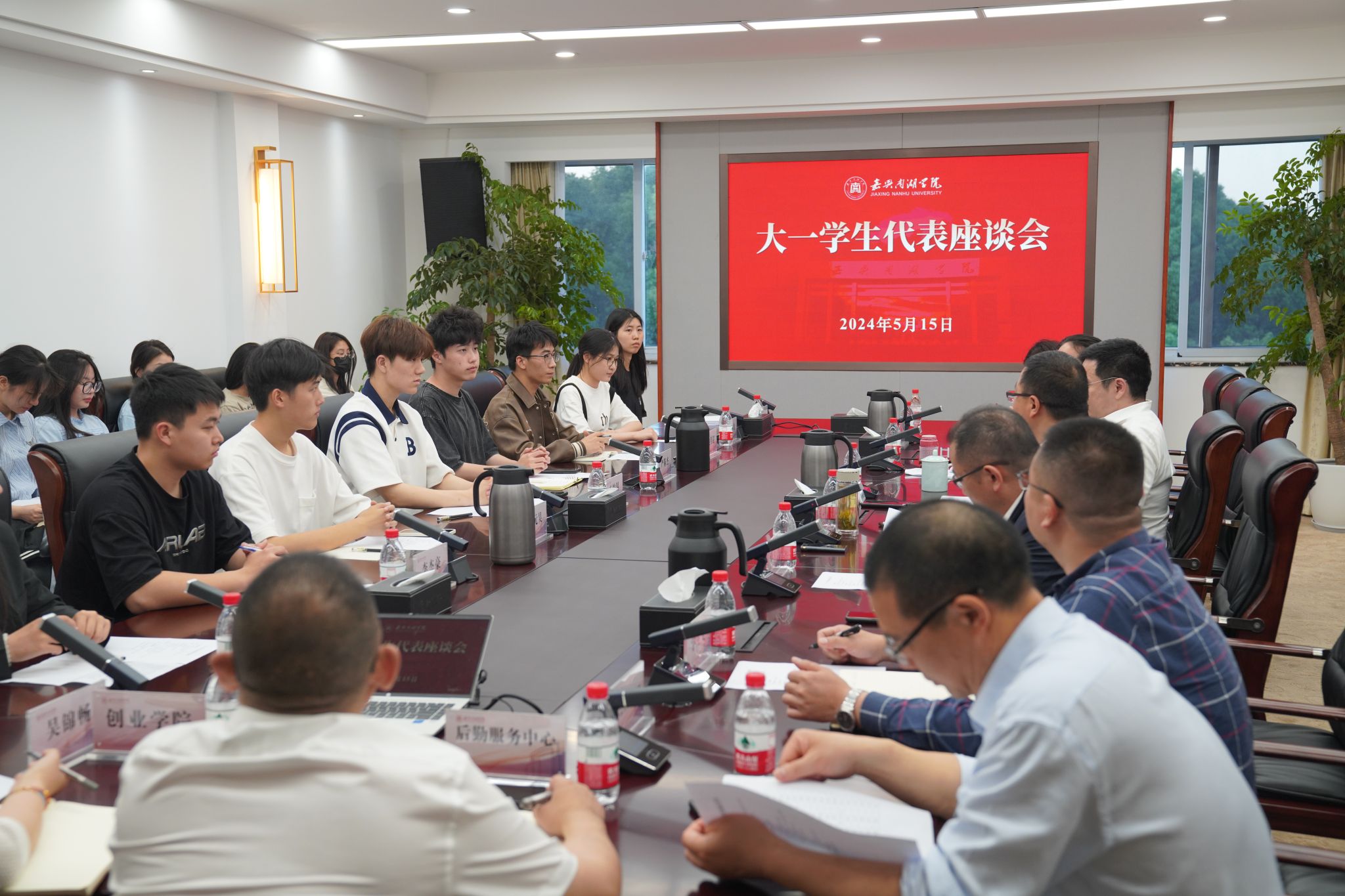 5月15日晚上,学校召开大一学生代表座谈会。校领导倪沪平、胡文蔚、蒋娟芬出席会议。相关部门负责人及大一学生代表参加会议。会议由学校党委副书记胡文蔚主持。