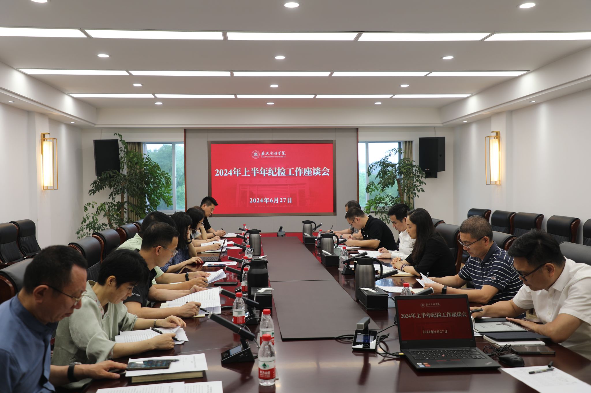 6月27日下午,学校召开2024年上半年纪检工作座谈会。校党委书记倪沪平出席会议,嘉兴市纪委监委第二监督检查室副主任乔岳应邀到会指导,党委(校长)办公室负责人、纪检监察室成员、各二级纪检组织负责人参加会议。会议由校党委委员、纪委书记、省监委驻开云官方入口 监察专员柯羽主持。
