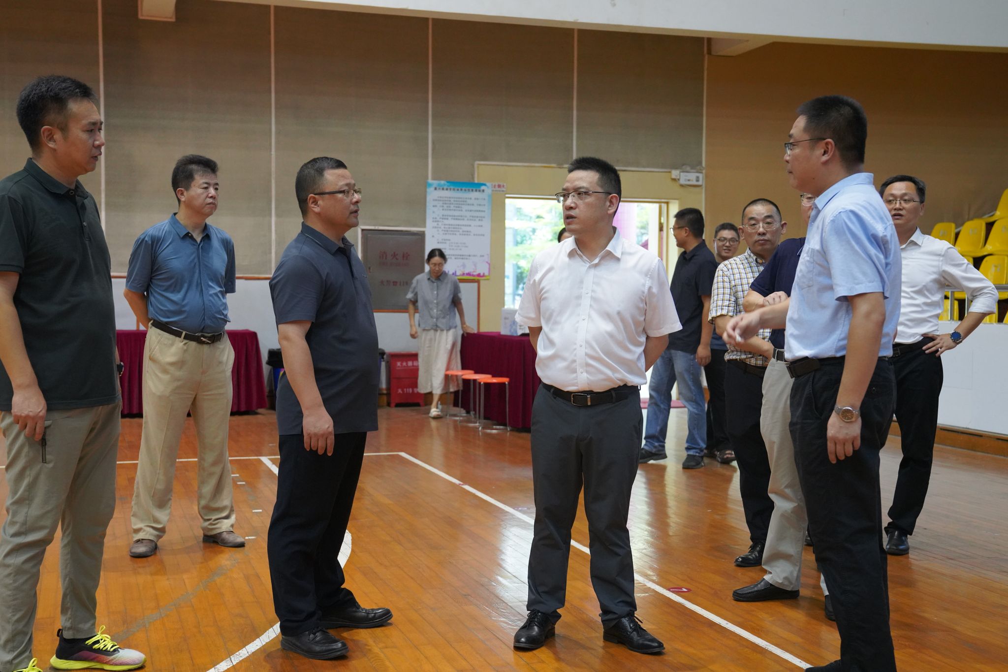 8月26日上午,校长贾文胜、校党委副书记胡文蔚、副校长李泉明一行实地走访了学生公寓、学生食堂、新生集中报到点、教学楼等地,认真听取了相关部门负责人对开学准备工作情况的汇报,并对学生报到流程、校园基建进度、校园环境提升、校园安全措施等方面工作进行了检查和指导。