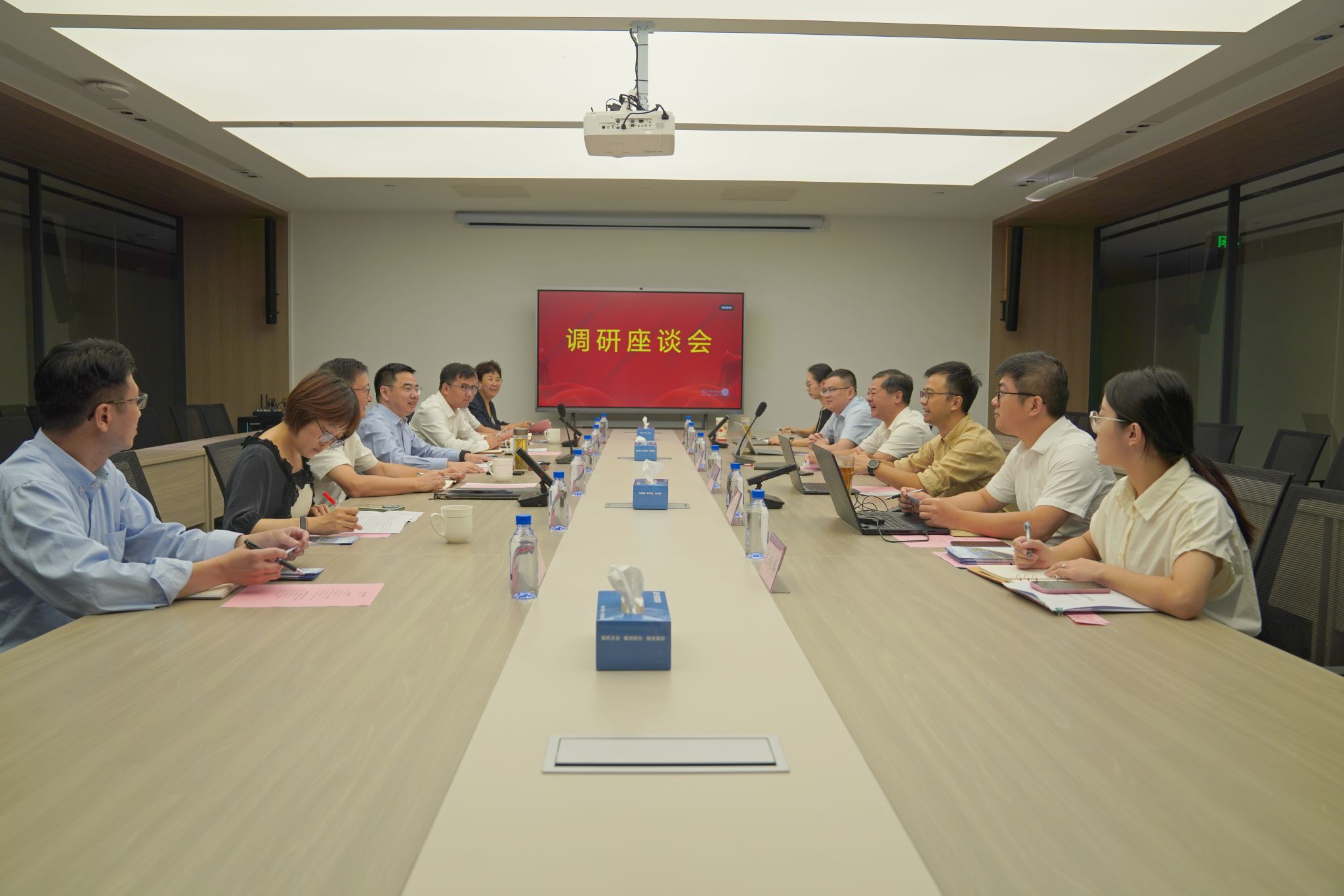 与会人员就共建研究实践基地、组建产业基金咨询智库、打造就业平台、提供人力资源服务、保障人才安居、共建创业创新平台等方面进行深入交流。座谈会前,倪沪平一行还参观了嘉兴长投集团、科创人才集团路演展示中心。
