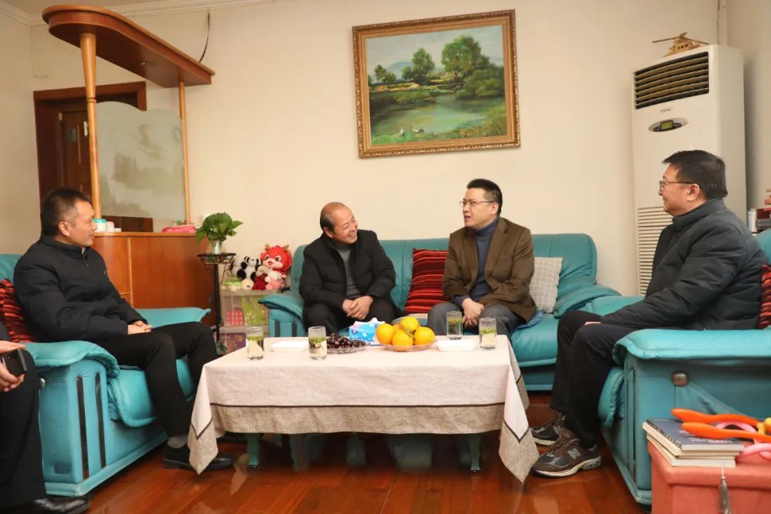1月15日上午,校党委书记倪沪平、校党委副书记胡文蔚带队前往退休教职工袁志明家中走访慰问。