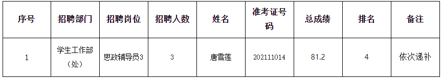 根据《开云官方入口 2021年公开招聘思政辅导员公告》程序,现将递补体检有关事项公告如下: