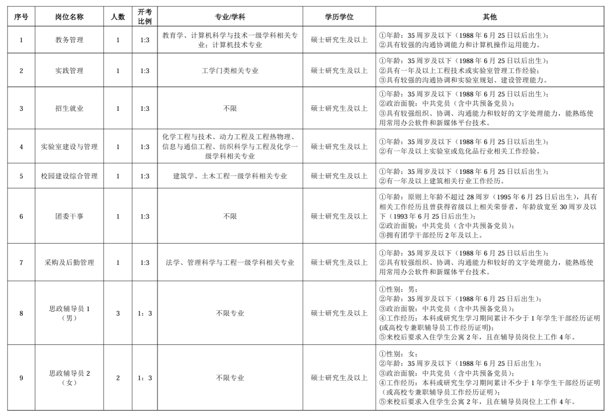三、招聘资格和条件