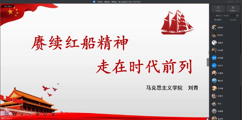 活动邀请到牡丹江师范学院党史宣传大使、金融学专业2019届校友刘青,为学生党员作题为“赓续红色精神,走在时代前列”的主题宣讲。刘青以中国共产党发展史为主线,重点讲解了学生党员应当如何传承弘扬红船精神。