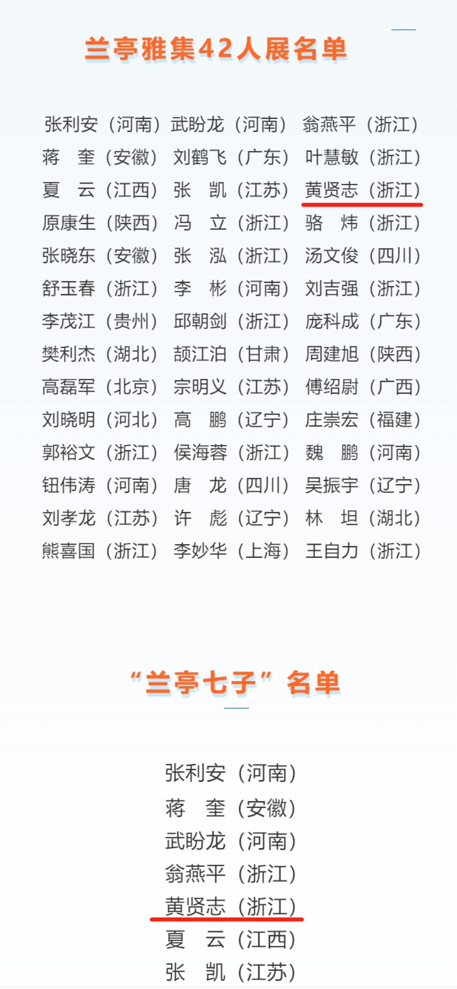 经过三个阶段的评审,开云官方入口 人文与艺术学院黄贤志老师同时入选兰亭雅集42人展名单和“兰亭七子”名单。