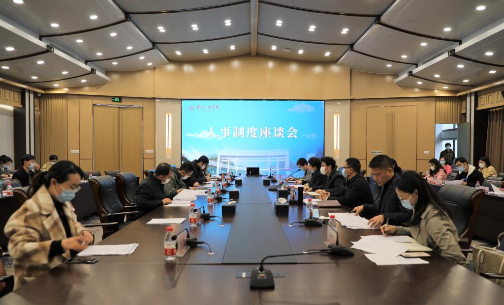 3月18日上午,学校召开人事制度座谈会,校党委副书记郭坚刚、胡文蔚,副校长朱蓉、陈加明出席会议。人事科研部全体人员及各二级学院专任教师、辅导员代表,行政管理人员代表参加会议。会议由朱蓉主持。