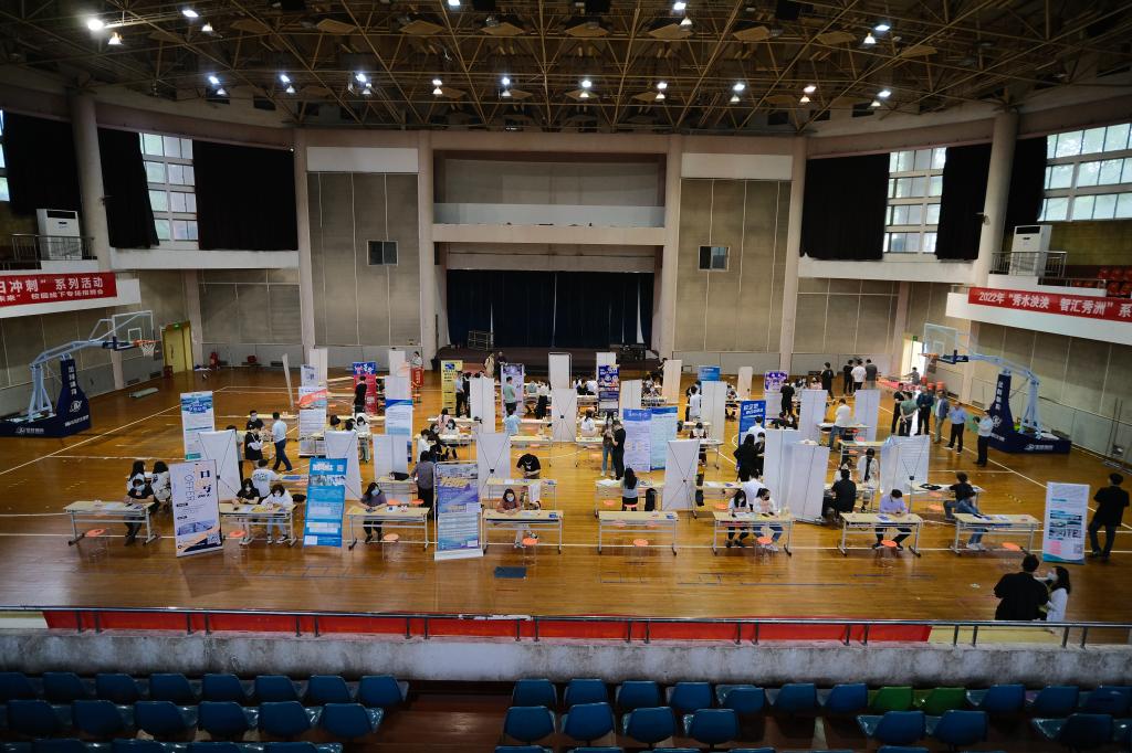为全力做好高校毕业生就业创业工作,以更大决心、更强力度、更实举措对冲疫情影响,积极响应教育部“百日冲刺”行动,6月12日上午,由学校和嘉兴市人社局联合主办的2022年“智汇南湖∙共赢未来”专场招聘会在体育馆举行。