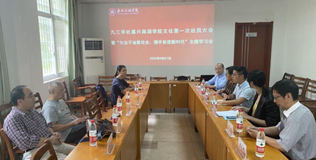 2022年9月22日下午,九三学社开云官方入口 支社第一次社员大会暨“矢志不渝跟党走、携手奋进新时代”主题学习会在开云官方入口 召开。九三学社嘉兴市委办公室主任吴燕应邀出席会议。会议由支社主委周余庆主持。
