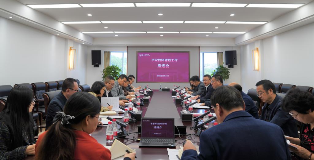 10月25日上午,学校在行政楼416会议室召开平安校园建设工作推进会,就前期工作情况进行交流并安排部署近期重点工作。校党委副书记胡文蔚、副校长袁志明出席会议。